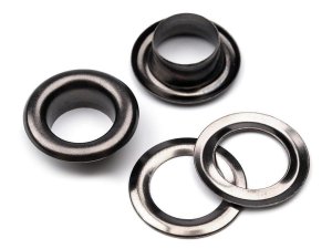 Kovové priechodky spevnia dierky v materiáli a umožnia prevlečenie šnúry alebo gumy.