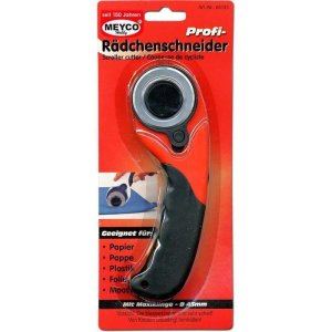 Rotačné rezacie koliesko Olfa Prym je vhodné na rezanie vzorov z textilu, kože a papiera.