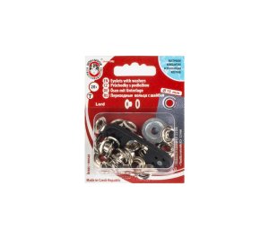 OBUVNÝ KRÚŽOK S PODLOŽKOU - PRIECHODKA materiál Kov priemer 13 mm krabička = 20 ks cena za 1 krabičku Priechodky sa používajú na šnúry, pre koženú galanteri alebo ako výstuž vetracích otvorov či plachiet.