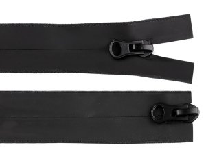 Kvalitný vodeodolný zips s 2 jazdcami je vhodný pre outdoor oblečenie, u ktorého predpokladáme vyššiu záťaž.