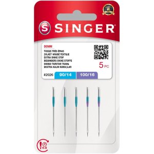Ihly na Denim SINGER 2026 ASST BLST W/05 DENIM V balení ihly - 3x 90/14, 2x 100/16 Ihly na džínsovinu majú ostrú špičku a zosilnené telo ihly Tá sa vďaka tomu neláme a nepreskakujú stehy Ihlový systém …