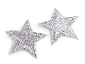 Nažehlovačka v tvare hviezdy je lemovaná lurexovou výšivkou a ozdobená glitrami, vďaka ktorým sa krásne trbliece.