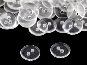 Transparentné dvojdierkové gombíky sú vhodné ako zapínanie na košele, svetre, šaty aj vankúše.
