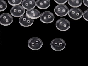 Transparentné dvojdierkové gombíky sú vhodné ako zapínanie na košele, svetre, šaty aj vankúše.