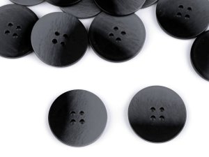 Plastové gombíky, ktoré sú z oboch strán hladké, využijete na našitie nielen na odevy, ale aj na doplnky (klobúky, rukavice, tašky a pod.).