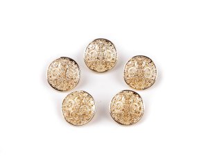 Kovové gombíky s filigránovým vzorom sú vyrobené zo zliatiny zinku a nemagnetických kovov.