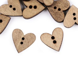 Drevené gombíky v tvare srdca využijete na dekoračné účely, prevažne pri scrapbookingu.