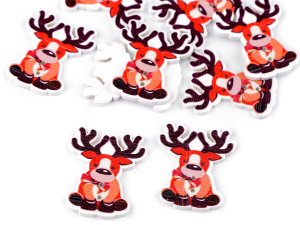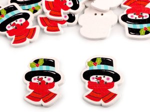 Drevené dekoračné gombíky s vianočnými motívmi.