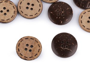 Dvojdierkové gombíky sú vyrobené z exotického kokosu.