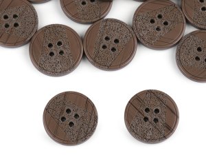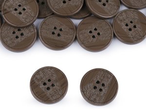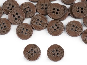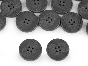 Štvordierkové gombíky majú z časti laserom vygravírovaný povrch.