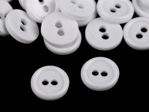[Plastové gombíky majú okrúhly tvar a dve dierky.