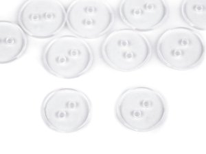 Plastové gombíky, ktoré sú z oboch strán hladké, využijete na našitie nielen na odevy, ale aj na doplnky (klobúky, rukavice, tašky a pod.).