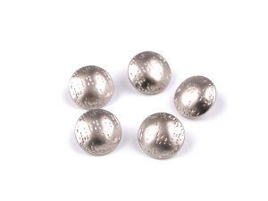 Ploché kovové gombíky so spodným prišívaním sú vyrobené z nemagnetického kovu.
