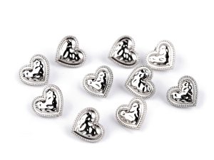 Kovové gombíky v tvare srdca sú zaujímavé tepaným povrchom.