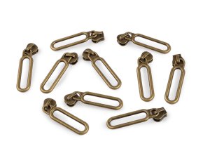 Kovový jazdec s veľkým ozdobným ťaháčikom je určený ku kosteným zipsom v metráži, ktoré u nás nájdete pod kódmi [090848, 900945, 900949].