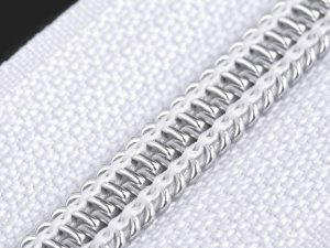 Špirálový zips má strieborné zúbky.