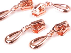 Kovový jazdec s veľkým ozdobným ťaháčikom je určený ku kosteným zipsom v metráži, ktoré u nás nájdete pod kódmi [090848, 900945, 900949].