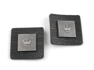 Dekoračnú aplikáciu štvorcového tvaru zdobí znak koruny.