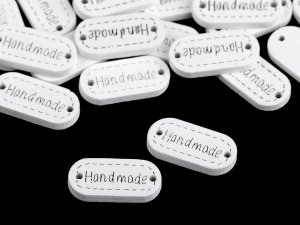 Kovový prívesok s nápisom Hand Made má široké použitie.