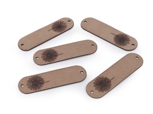 Ceduľka z eko kože je ozdobená jednostranným obrázkom odkvitnutej púpavy.