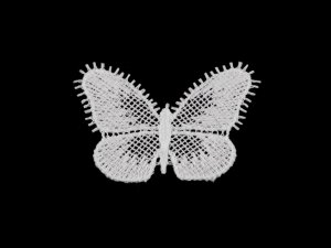 Čipkovú aplikáciu motýľa využijete na zdobenie odevov napr. blúzok, šiat, rôznych klobúčikov, tašiek a pod.