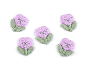 Aplikácia kvety sirôtky je ozdobená štruktúrou výšivky.