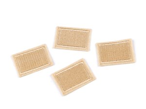 Pevné nažehľovacie záplaty oválneho tvaru sú vyrobené zo semišu.