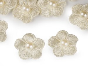 Vyšívané kvety sú doplnené perlou, ktorá je pevne uchytená nitom.