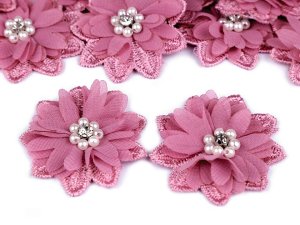 Romantický textilný kvet z šifónu je dozdobený pierkami.