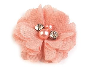 Romantický textilný kvet z šifónu je dozdobený pierkami.