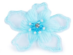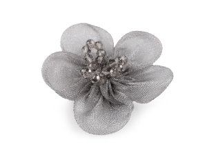 Romantický organzový kvet s jemným ligotom je v strede dozdobený prepracovanými pestíkmi z brúsených korálikov.