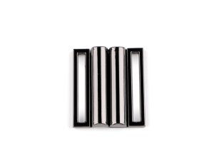 Kovové zapínanie sa skladá z dvoch dielov a zapnete ho vsunutím jedného dielu medzi druhý.