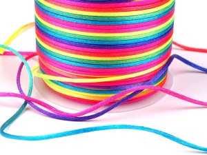 Saténová šnúra je zaujímavá svojim dúhovým zafarbením.