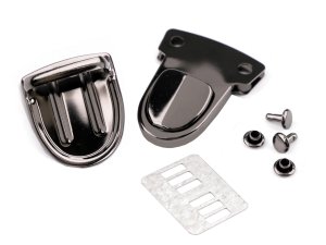Mini kovové zapínanie na listovú kabelku, kabelku, tašku či batôžtek sa skladá z troch dielov.