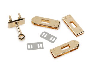 Zapínanie na kabelku či tašku sa skladá z dvoch dielov a pliešku.