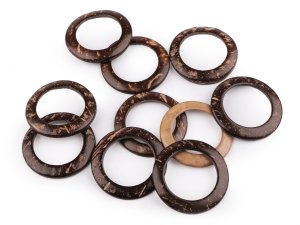 Prírodné kokosové krúžky sú vhodné na výrobu uší na kabelky a tašky, na ozdobenie kabeliek aj na výrobu macramé dekorácií či pásikov.