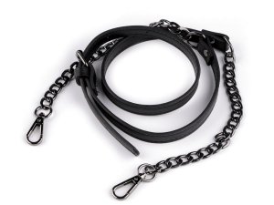 Koženkový popruh kombinovaný s retiazkou elegantne vynikne na kabelke.