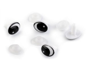 Oválne plastové oči so šibalským výrazom využijete na výrobu rôznych zvieratiek a postavičiek napr. plyšákov.