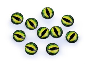 Okrúhle sklenené oči s motívom mačacieho / dračieho oka majú kvalitné spracovanie.