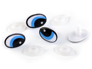 Oválne plastové oči s kvalitnou farebnou potlačou využijete na výrobu rôznych postavičiek a zvieratiek z textilu, napr. plyšákov.