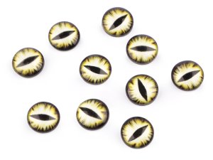 Okrúhle sklenené oči s motívom mačacieho / dračieho oka majú kvalitné spracovanie.