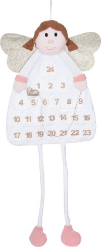 Adventný kalendár ANJEL 120 cm, závesný. dĺžka: 50 / 120 cm hmotnosť: 220 g farba: biela a ružová so zlatými číslicami vankúšová hlava dodávané v sáčku Adventný kalendár - závesný anjel so zlatými trblietavými …