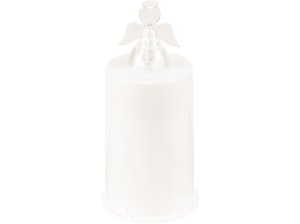 Vianočná sviečka v tvare valca je ozdobená glitrovými ornamentmi.