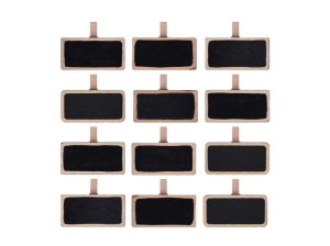 Dekorácia drevená ceduľka na kolíčku v čiernej farbe prírodná 12 ks 19x39mm