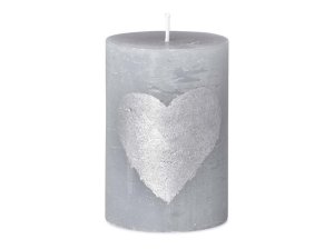Rustikálna sviečka valec v šedivej farbe + srdiečko lak 70x100 mm