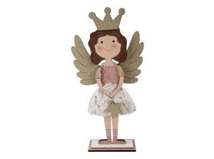 Drevená dekorácia anjela – jemné glitre a farebné detaily pre slávnostnú atmosféru.