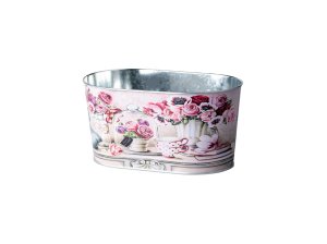 Kvetináč plechový Oválny Kvety vo farebnom prevedení 225 x 135 x 115 mm