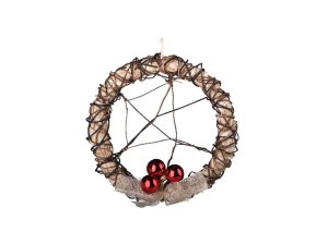 Dekoratívny veniec 300 mm s červenými ozdobami - elegantný a slávnostný.