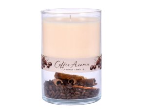 Dekoratívna vonná sviečka v skle s vôňou čerstvo mletej kávy vytvára príjemnú a hrejivú atmosféru.