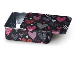Dóza plechová Srdiečka hranatá v mixe farieb 120 x 90 x 35 mm